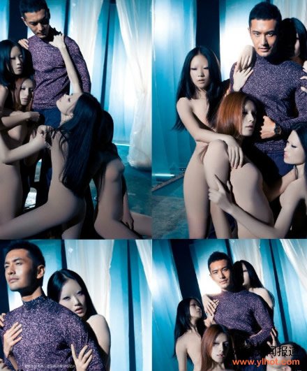 黄教主置身“假人”美女模特中
